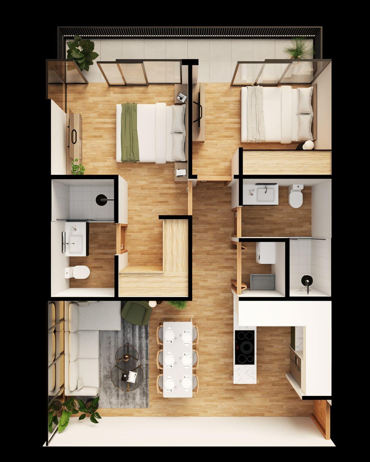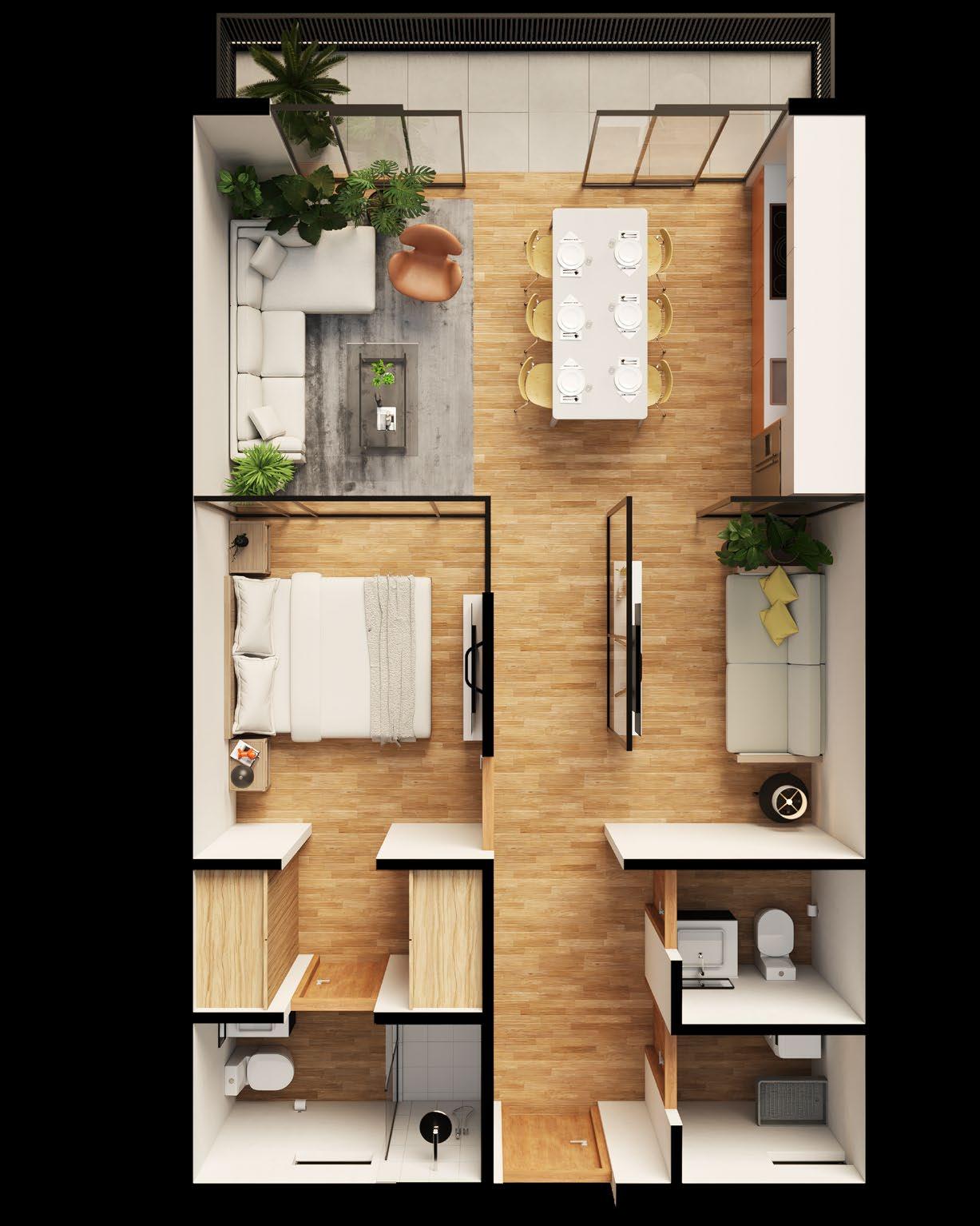 Los modelos Lúmina y Armonía son los más grandes del proyecto Horizontes, con 74 m² cada uno. Su distribución está diseñada para atender a diferentes mercados.