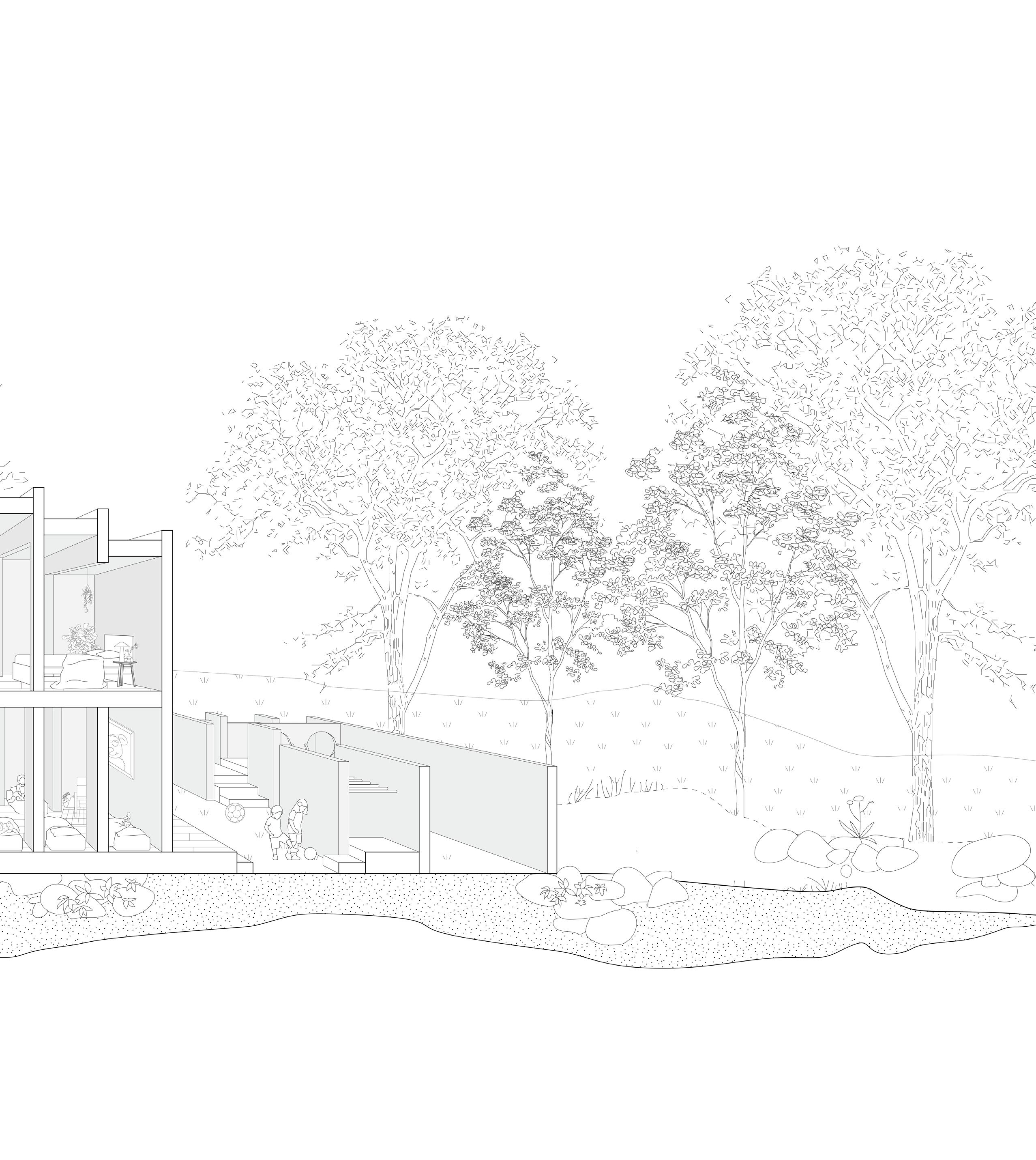 Tiny Tots was largely influenced by the pavillion project assigned prior, with its elevations displayed on the right. pavillion featured in the riverside gallery.