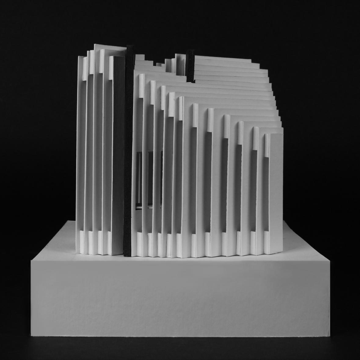 Array of fins treated as a solid allow for spaces to be carved out according to programming.