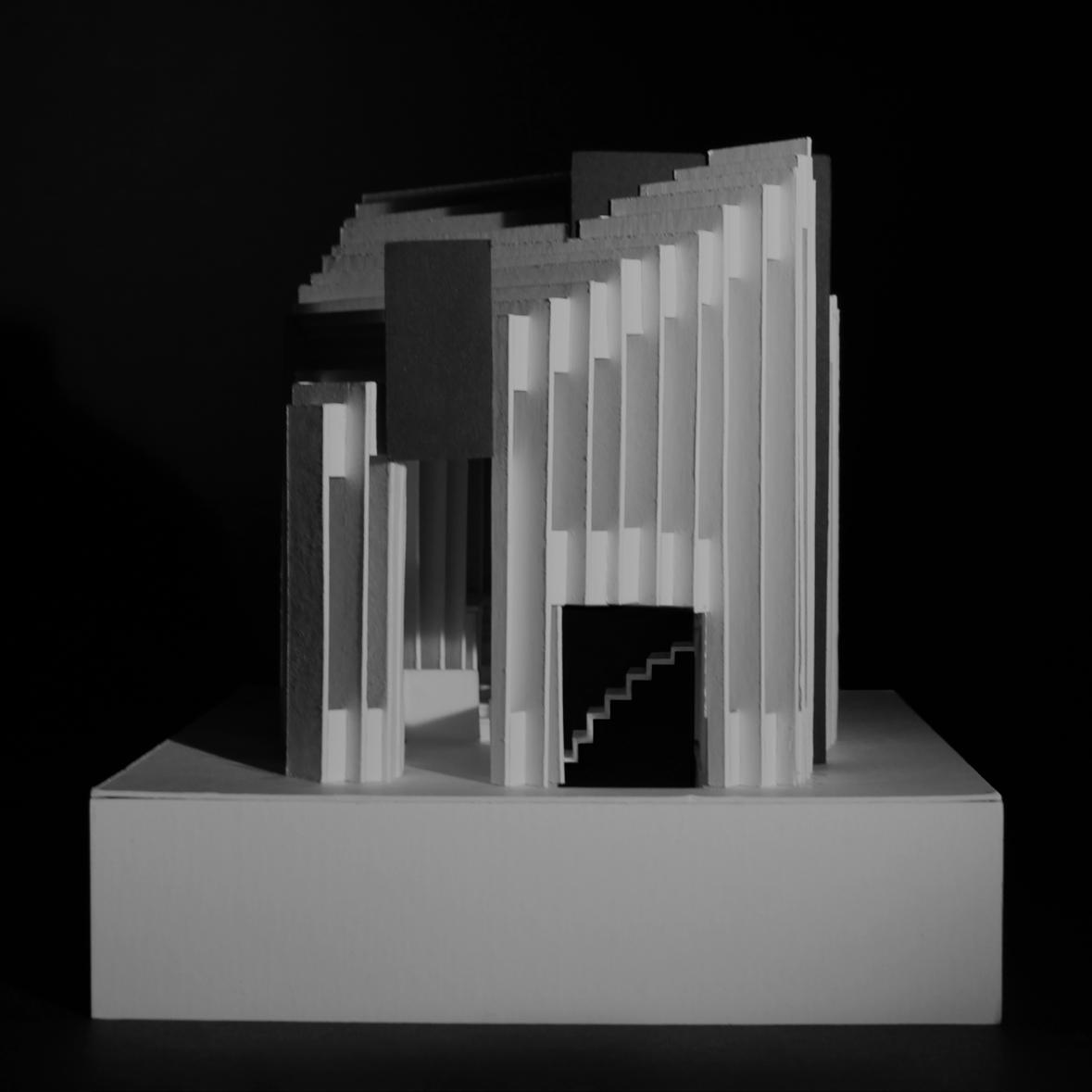 Tiny Tots reflects a previous project where we were to design a pavillion inspired by an image given using solids, planes or lines. Treating the array of diagonally oriented, vertical planes as a solid block, essential spaces such as the gross motor area were carved out while lesser important spaces manifested in the resulting connections between the carved-out spaces.