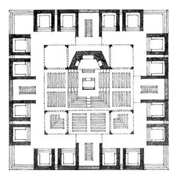 The spatial composition takes precedent from the unique hierarchy created within both Scottish castles and the work of Louis Kahn. The concept that ties the two precedents together is the idea of ‘rooms within walls’, an opportunity to create a spacewith a permanent shell and adaptable centre. The depth of the walls also connects to the idea of Wabi Sabi and palimpset, creating layers of function within the plan, creating an exhibition atmosphere.