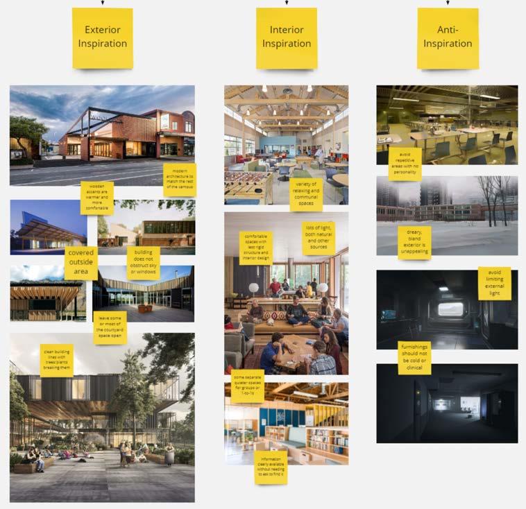 All three of the spaces and character contexts shown to stakeholders were well-received, however there were requests to see further variations across the whole building. Specifically, students requested concept images of the 1-to-1 session spaces to talk privately with the MHS staff, and clear public spaces to rest and relax alone, with no indication of need or desire for company.