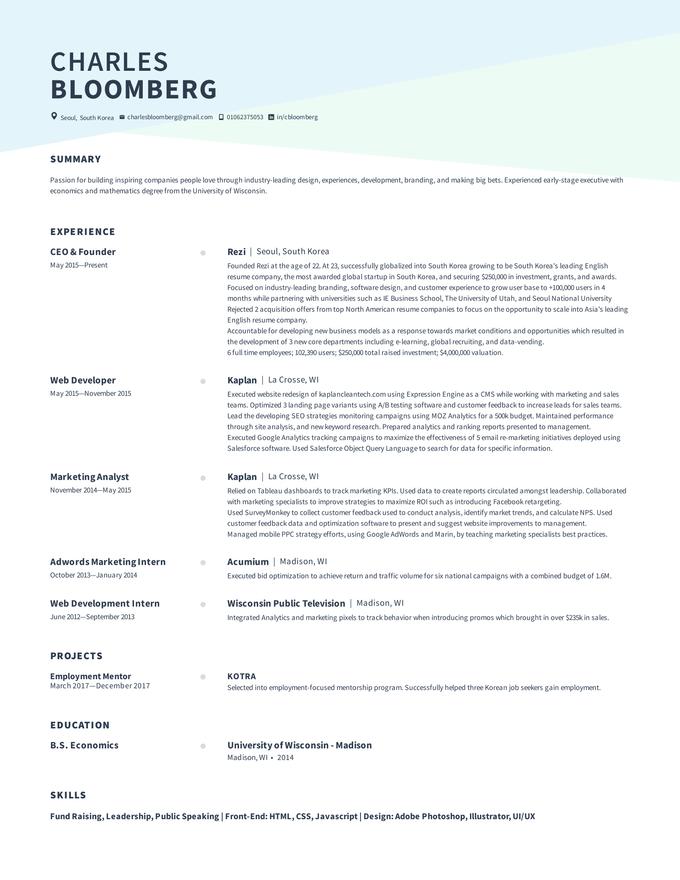 Y por último, nos encontramos con REZI. Esta aplicación va dirigida a estudiantes, recién graduados, con el fin de ayudarlos a entrar en las empresas de interés, elaborando un gran curriculum.