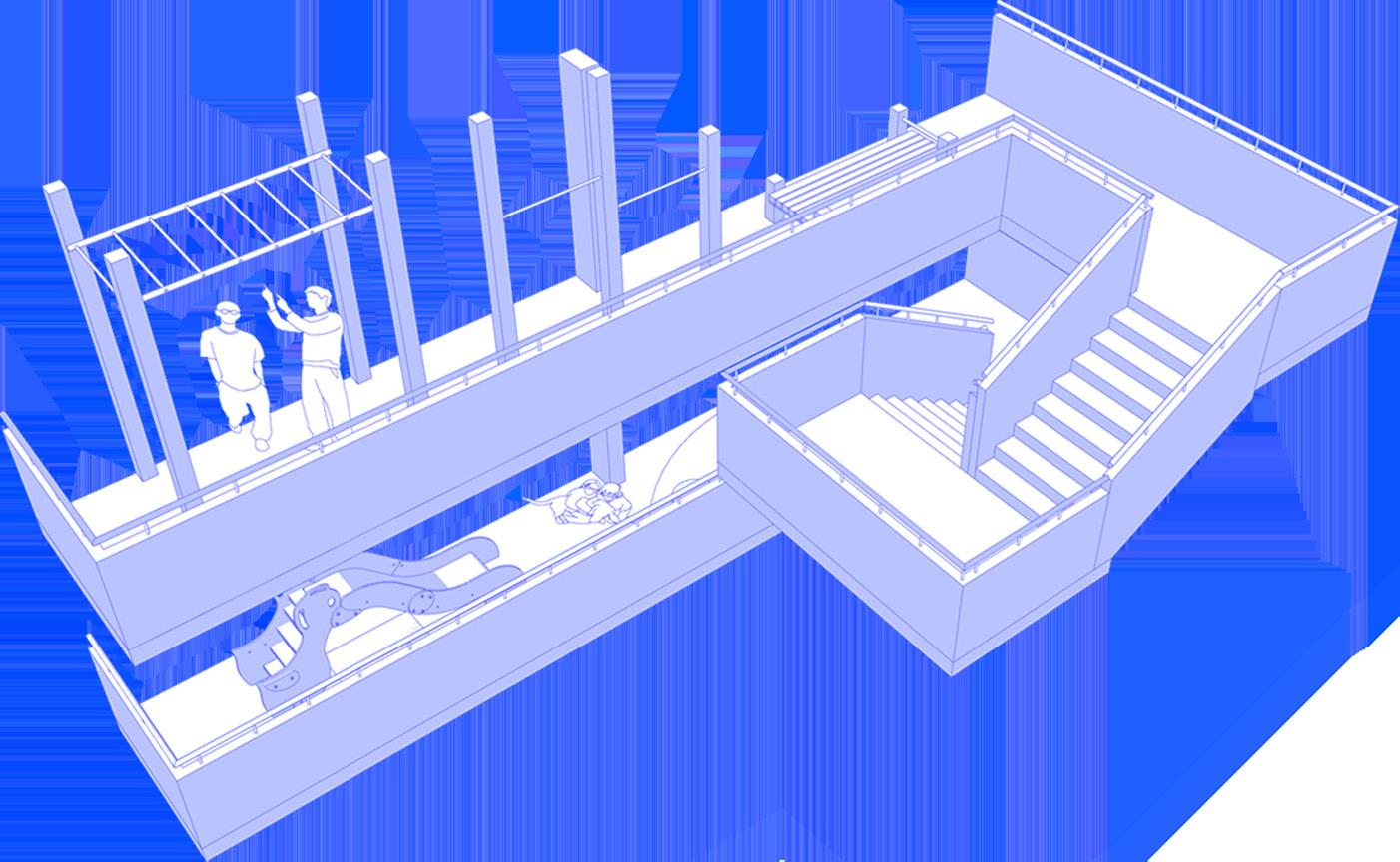 The communal and corridor spaces play a crucial role in fostering a sense of community. The modules should serve as focal points to establish a new social network, decluttering the spaces and encouraging communal usage, allowing individuals to gather and foster organic growth.