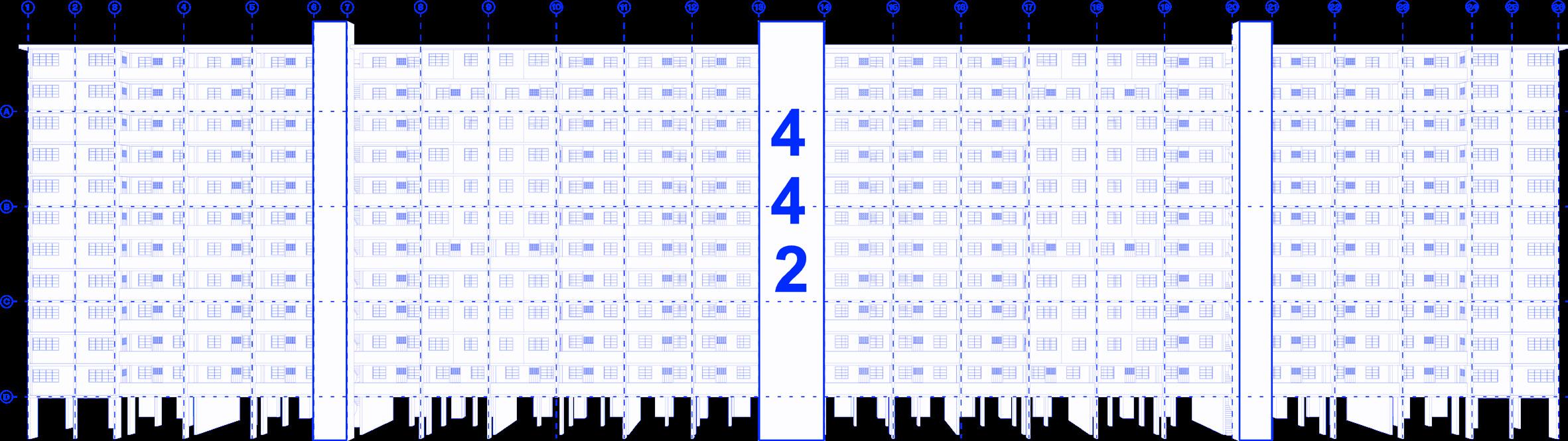 These corridor and corner units are arranged along a long corridor and lift cores.