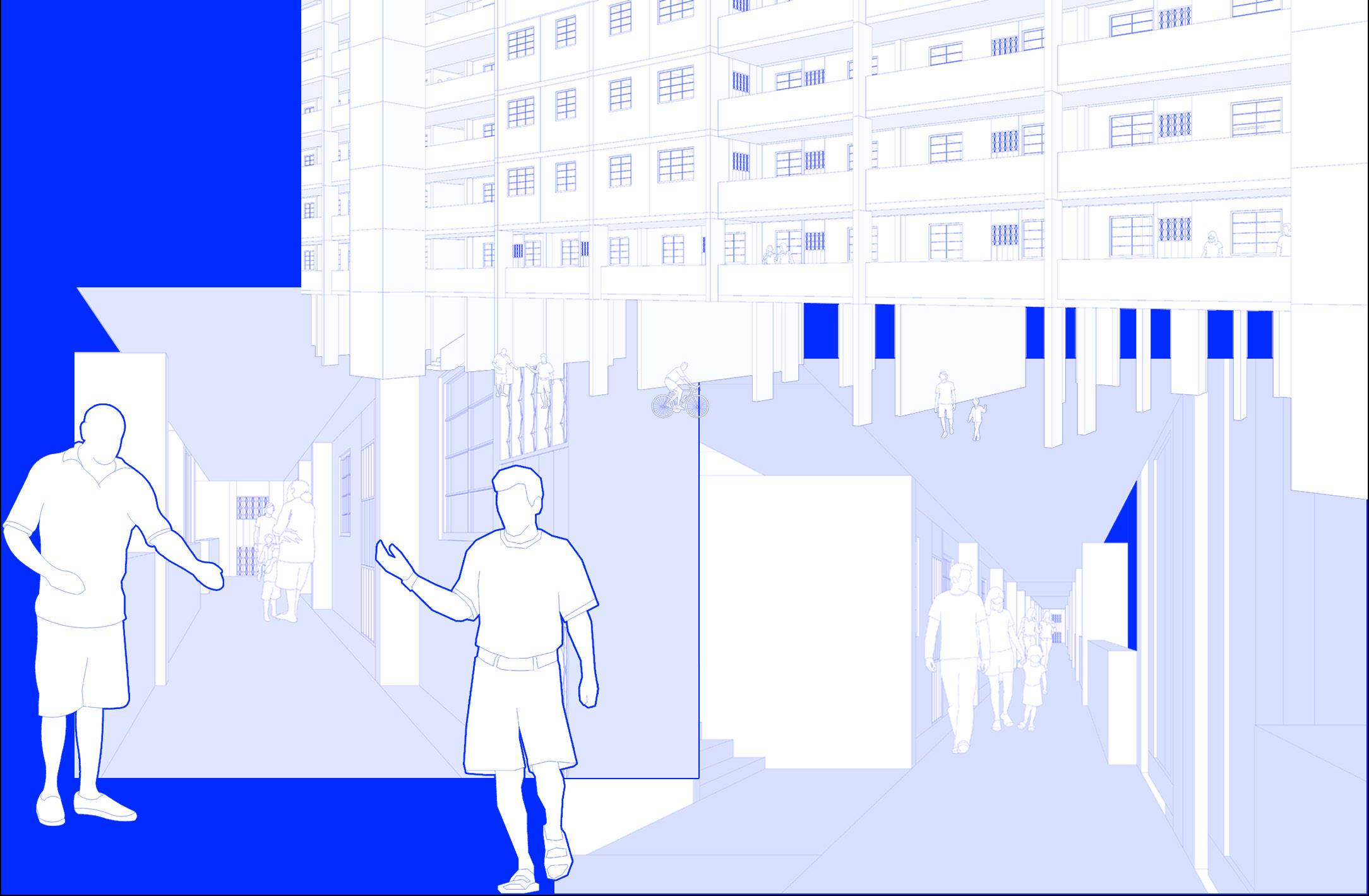 It is critical to provide units with the basic necessities required for performing everyday tasks. Hence, to honour the slab block’s original architectural intentions, it is essential to strike a balance between liveability and community formation.