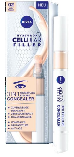teksturi i tri različite nijanse, može se koristiti neovisno o području lica i namjeni - kao “highlighter”, bronzer, za naglašavanje kontura, sakrivanje nedostataka ili jednostavno kao brzinski fix-up za dnevni make-up. NIVEA Cellular 3 u 1 korektor za njegu područja oko očiju, 4 ml - preporučena MPC: 139,90 kn/ 18,57 EUR.
