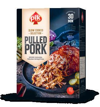 PULLED PORK ili točnije trgana svinjetina najčešće je pravljeno jelo od svinjske lopatice koja se prije serviranja odvaja/trga od čega dolazi i samo ime. Prilikom proizvodnje u PIK-u prolazi kroz šest sati kuhanja kako bi se ukusan obrok za dvoje mogao pripremiti u samo pola sata. Idealno ga je poslužiti u pecivu ili tortilji, a može se jesti i klasično uz prilog.