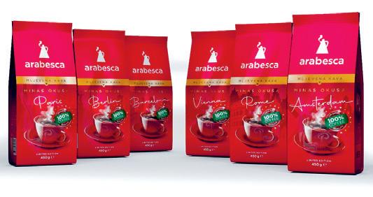 Arabesca je predstavila limitirano izdanje Minas kave u ekskluzivnom pakiranju od 450 grama. Riječ je o tradicionalnoj recepturi mljevene kave koju odlikuje savršen užitak ispijanja, a koju su kupci od kraja studenog imali prilike pronaći na policama trgovačkih lanaca u iznimno atraktivnom izdanju. Arabesca, kompanija usmjerena na praćenje trendova i stalne inovacije u razvoju proizvoda, ususret euru donosi šest europskih gradova na ambalaži. Nema sumnje da će potrošači odlično prihvatiti ovaj proizvod, a cijela priča je povezana i s “Arabesca povezuje, #dođinakavu” kampanjom koja je počela na poznatom nacionalnom radiju, nastavlja se na društvenim mrežama na kojima se pripremaju uzbudljiva povezivanja ljudi, te će kruna biti in-store aktivacije na top lokacijama diljem zemlje tijekom blagdanskog razdoblja.