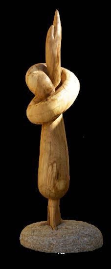Escultura en fusta de roure i com a base un còdol del Mediterrani (90 cms)