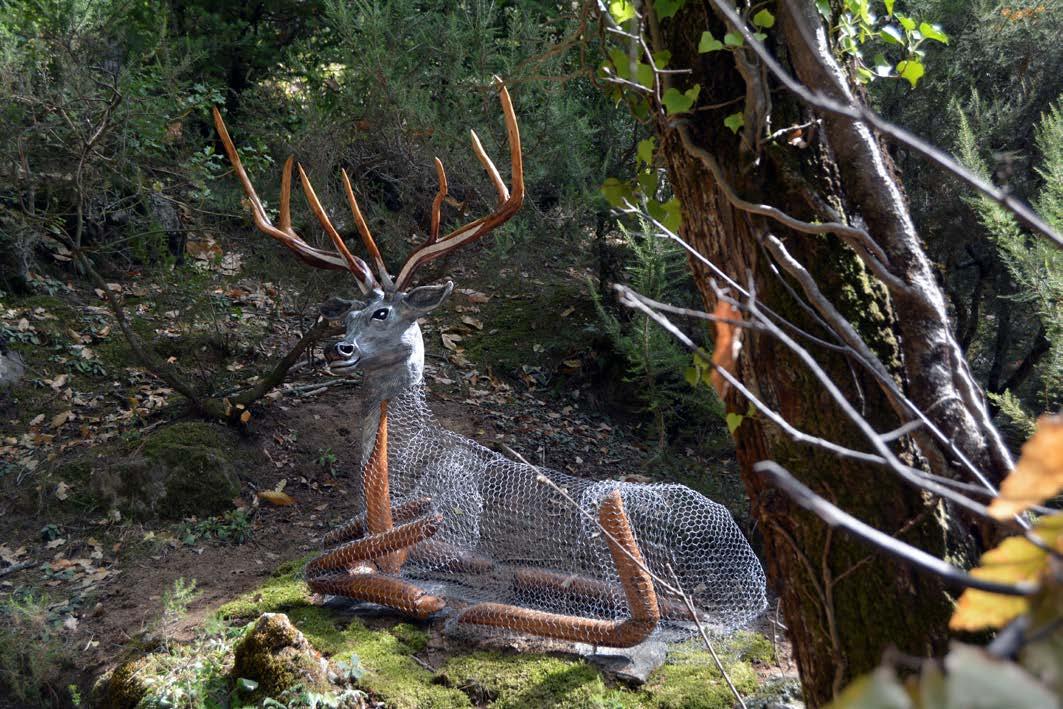 El cérvol està fet a partir de la tela metàl.lica d’un antic galliner de Can Talaia. El pes del cap, realitzat amb una fosa d’alumini, obligava una estructura per suportar-lo.