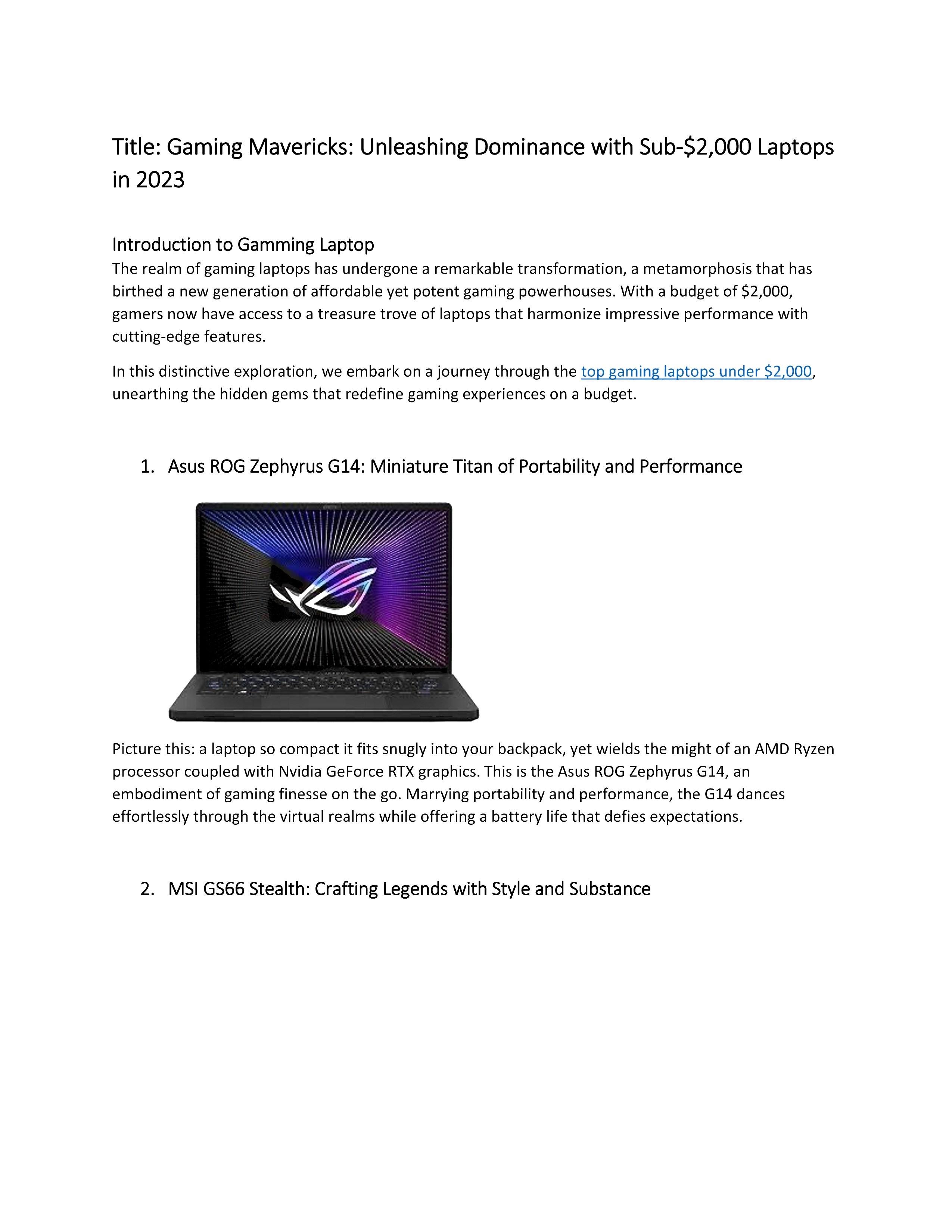 There are several great gaming laptops available under $2000.