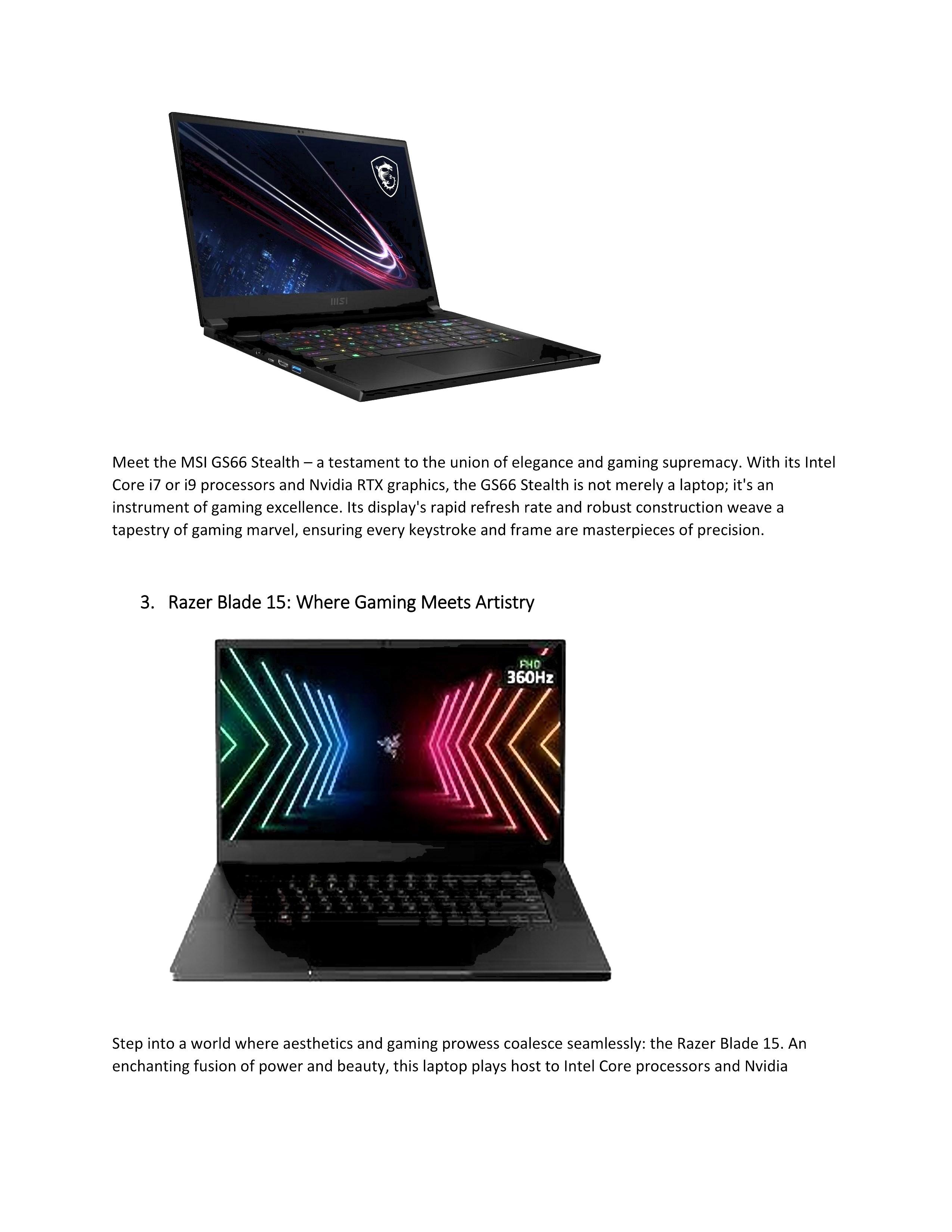2. MSI GS66 Stealth - The MSI GS66 Stealth has an Intel Core i7 processor, NVIDIA GeForce RTX 2070 graphics card, and 16GB of RAM. It also has a fast 240Hz refresh rate display and a sleek design.