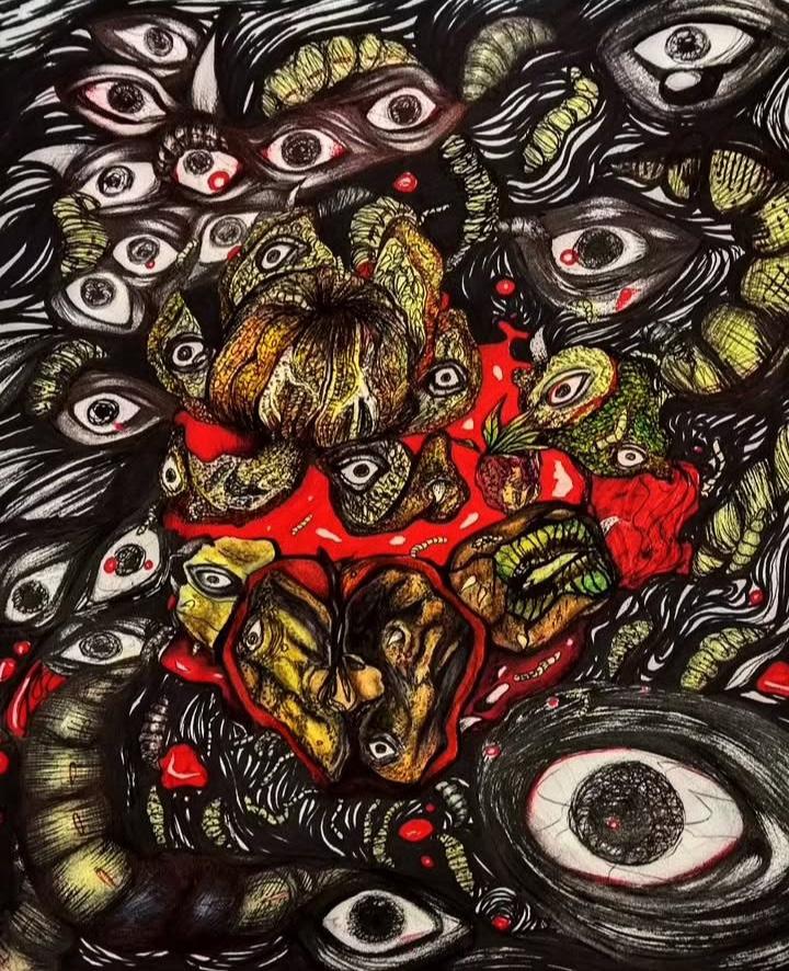 Eli Oblad has always enjoyed art. From creating his own monster characters to making wood craft statues he is constantly creating. Eli has learned to create art with many mediums. His recent works have been made with copic markers, but he has painted, wood-burned, used tapes, aresol spray, or even repurposed plastics to create characters or abstract pieces. He recently learned about doodle art and zentangle and enjoys incorporating new styles as he learns.