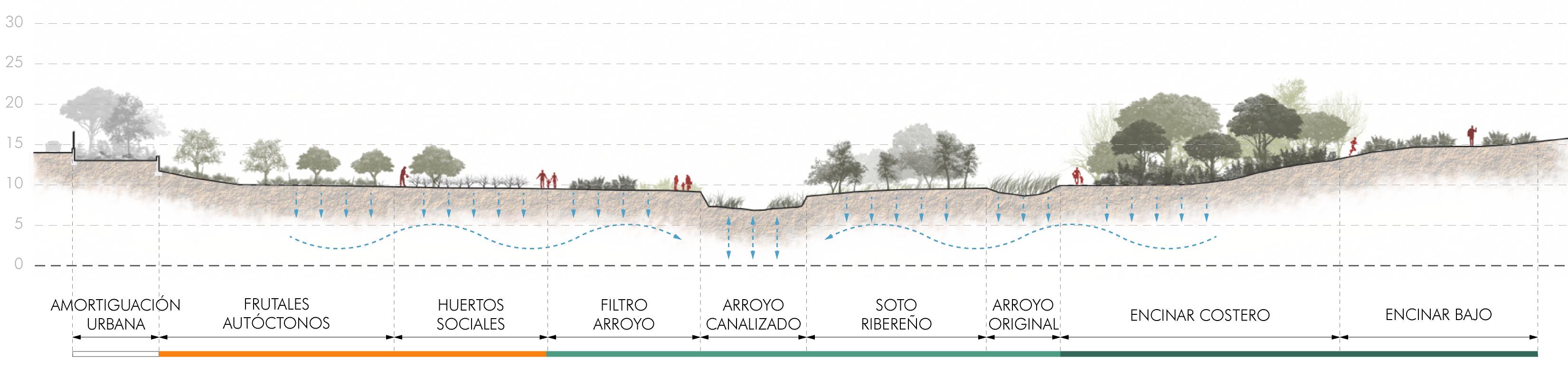 Projects, like the ‘Bosque Metropolitano’, entail expanding these determinants, but it is necessary to go one step further to provide accessibility to citizens. Here, it appears the district of Tetuán, an area whose values are well below the established ones. The project soughts to link the inhabitants with the forest ring by taking advantage of the schoolyards as new green lungs of the city.