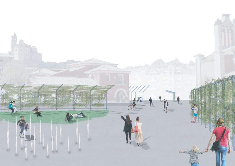El concurso recoge los aledaños de la imponente ex-colegiata y restos de murallas medievales a sacar a la luz. La propuesta trata de relacionar los diferentes espacios a través de un recorrido sensorial entre el pavimento, la vegetación local y el sonido del agua. La intervención trata de ser lo más discreta posible para sacar a la luz toda la historia que recoge el espacio.