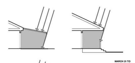 Los voladizos de las ventanas (diseñados para esta latitud) o los parasoles operables (toldos que se extienden en verano).