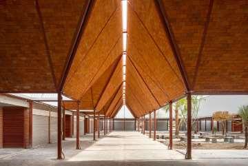En cuanto a la estructura se optó por una armadura de Abanico que este diseñada para soportar el peso del techo y así de esta manera poder tener grandes claro que ayuden a la distribución arquitectonica del mercado y pocos nodos en los cuales caeran el peso muerto de la estructura. Además las armaduras tienen un menor costo por metro cuadrado en la losa y en la ejecuación de obra, ya que no se necesita de mucha mano de obra para la construcción de la misma. Las armaduras se pueden construir en distintos tipos de materiales como: madera, acero y concreto armado siendo otra ventaja competitiva ante otros tipos de techumbres. (Coello A. , 2015)