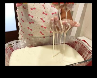 Glicerina o aceite de bebé. Agua. Colorante vegetal de varios colores. Silicona liquida.