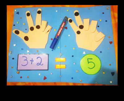 Empezamos con una canción de “Son los números del 1 al 10” para que los niños vayan acordándose los números, luego la maestra les enseñara los deditos contadores. Y les explicara en que consiste el juego de las sumas. La maestra dirá unas sumas y procederá en escribir en el recuadro morado la suma por ejemplo 3+2 y el niño o niña procederá a poner 3 deditos en una mano y el resto les pega y en la otra mano pondrá 2 deditos y los que sobra igual los esconderá y ahí podrá contar los deditos que están alzados y así sucesivamente con más sumas.