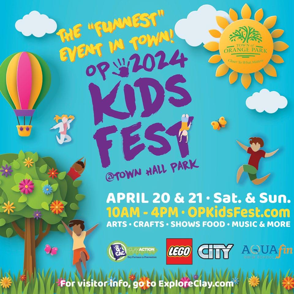Orange Park Kids Fest 2024 will be held April 20-21 from 10am to 4pm at Town Hall Park in Orange Park. Admission and parking are free! There will be games and activities like train rides, a playground, mini golf, touch-a-truck, Junior Firefighter Academy, sensory play, food, live music, and more. Visit opkidsfest. com for complete event details. Follow us...