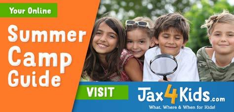 If you’re looking at summer camp options for your children, you’ll find lots of choices throughout this month’s issue. You can also find an always updated list of camps online at jax4kids.com.