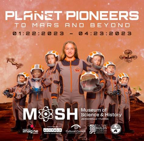 Planet Pioneers: To Mars and Beyond is an immersive and interactive STEM-based exhibition designed for children ages 5 to 12 and their families. From rocket launches to landing and building a habitat to a base, there is plenty to see and do. Visitors will engage in 17 different handson learning stations that explore themes such as adapting to new environments, the challenges that await humans on distant worlds, and how technology developed for space impact day-to-day lives on Earth. Experience what it takes to be the next generation of space goers, learn about the challenges – and risks – of being an astronaut, and help settle new worlds for the future of humanity. The exhibit is included with general admission. Museum of Science and History / 904-396-MOSH / 1025 Museum Circle, Jacksonville, FL 32207 / themosh.org