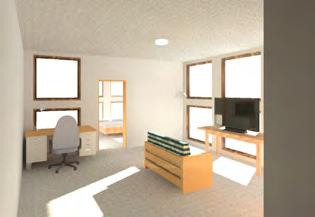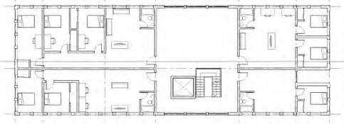 Traditional dormitories, like the one here done by JE Dunn at CU Denver, offer multiple adults to live together under the same roof and share amenities like bathrooms and sometimes even a kitchen, while still separating their sleeping spaces to only be 1-4 persons per room.