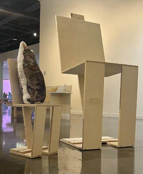 The second was a project focusing on democratic design, and the challenge was to design and build a piece of furniture that would either be done entirely with recycled materials or done with cheap materials anyone could get their hands on. For this project we also had to provide an assembly guide so that anyone could use our designs, therefore it was important to document the amount of material being used and what it would look like taken apart. The chair is what I designed for this prompt, and I used a single 4’ by 4’ sheet of plywood to make a full scaled and half scaled chair (even had some leftover) for my cat and I, inspired by Gerrit Rietveld’s Zig Zag Chair.