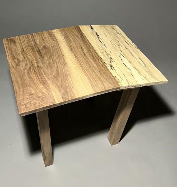 The lyrics that most influenced the design are translated most in the one feature that makes this table different from the known image of table: the top bends and becomes an uneven surface. The table itself is broken, but still alive, because its pieces have been put back together, despite appearing differently than before. The more literal translation is the dark walnut is darkness while the spalted maple is light like hope, and each contain fragments of each other inside.