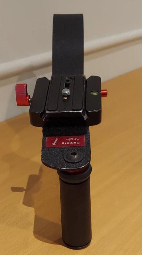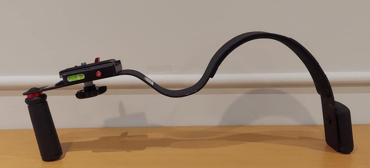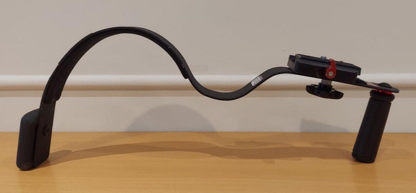 The Rig QR Classic takes the strain off the camera operator’s wrist, hands, and back with a counterbalanced and padded shoulder support. A sturdy 1” diameter aluminum rubber-covered handgrip with a small vinyl-covered lead counterweight is mounted low on the back of the support for superb counterbalance.