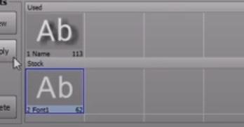 - Select the Title text object • Click the Apply button Title text object will change appearance • The new font will move from the Stock row to the Used row