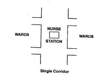 The quality of corridors are very important the corridor should be centrally placed and should have a minimum necessary length with visual connectivity to Open Spaces the corridor links rooms for patient and staff should have interaction spaces like an Atrium, plants, quiet places, etc. Narrow and cluttered corridor and dead ends should be avoided. Provide nature oriented wall papers or interactive wall in corridors. When travel distances cannot be made shorter, the perception of a shorter corridor through floor patterns, wall finishes, and ceiling design can be psychologically positive. Curved walls should be considered because corridors appear shorter if they have no visible end.