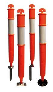 Other lengths made to order 1 PART Reboundable Bollards Made from polyurethane compound, weight 1.8kg for the 750mm high and 0.9kg. The 450mm high is orange with white reflective sheeting.