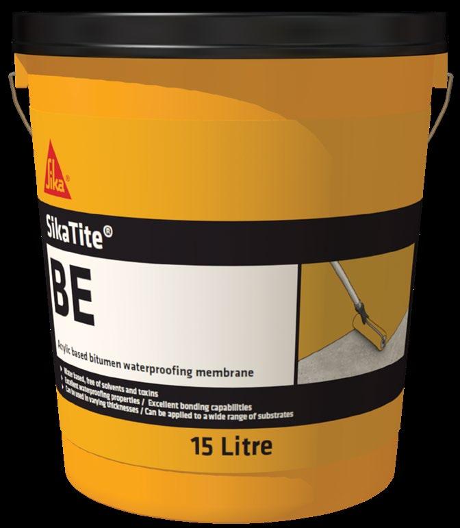 SikaTite BE is a water based bitumen emulsion modified with acrylic latex polymers. It can be applied as a waterproof membrane, sealant, protective coating or adhesive. It is designed for use underground, internal and immersed areas.