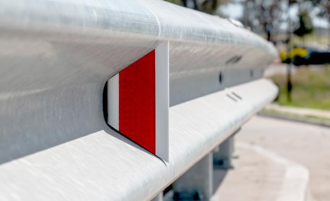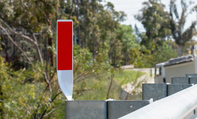 Using the existing guardrail fittings, the Joint 5 conveniently mounts onto the joining bolt on top of the guardrail. The Joint 5 is made using injection moulded nylon 6 with UV stabiliser. The shatterproof substrate is sized to display a 50mm x 100mm class 1a delineator.