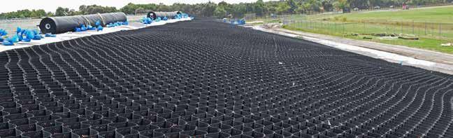 EROmasta™ HDPE EroWeb is constructed of lightweight and flexible three dimensional, expandable perforated panels made from high-density polyethylene (HDPE) strips which are ultrasonically bonded together to form an extremely strong configuration.EROmasta™ HDPE EroWeb System can be filled with a wide range of material: aggregate, concrete, sand, soil, etc. EROmasta™ HDPE EroWeb is engineered for soil stabilization applications, it’s used to help improve the performance of standard construction materials and erosion control treatments.