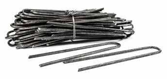 150mm geo pins are used in most cases for relatively firm compacted soils, with the longer 300mm pins used for pinning through loose topsoil.