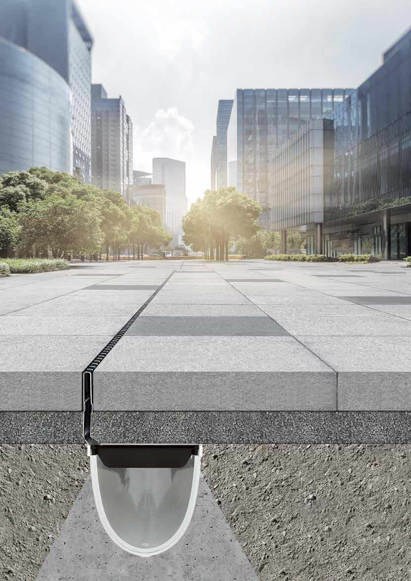 Provides a discreet, quiet and efficient solution for multi-storey car park drainage, with barrier-free access for persons with restricted mobility. With no cover gratings or moveable parts, the drainage channel is easy to clean and provides a smooth surface. Long-lasting and robust design suitable for high load bearing.
