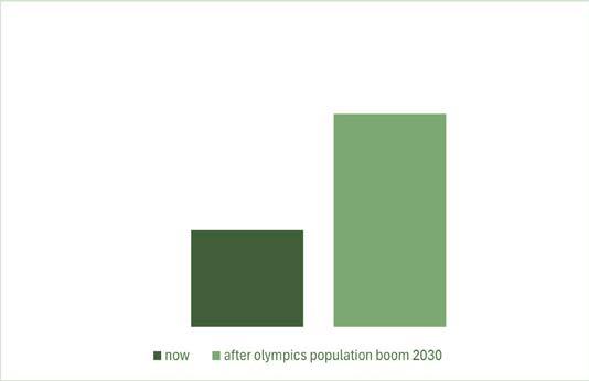 These projections also predict a great lack of greenspace for the new population density as well as an extreme lack of schools available in the area.
