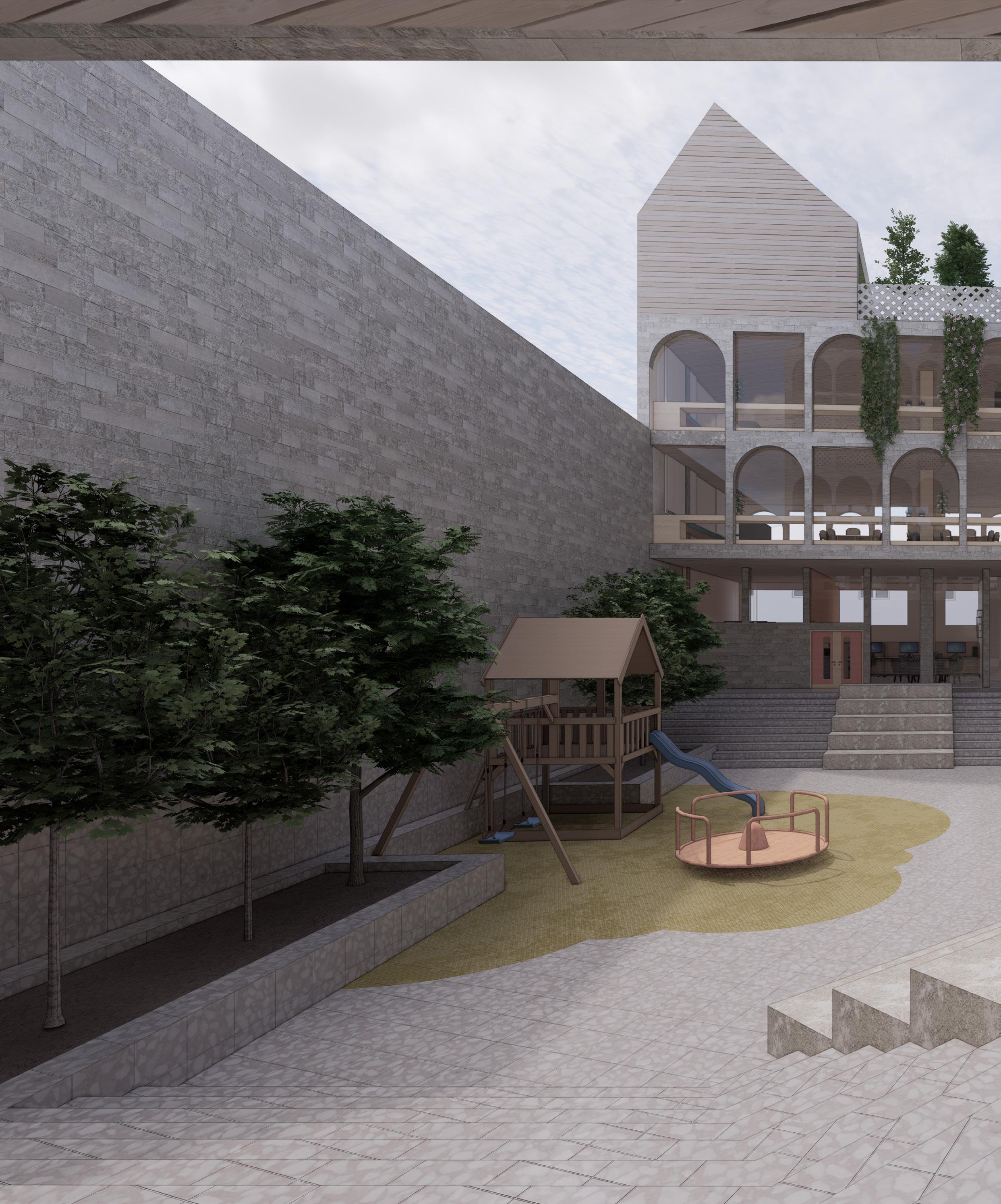 The intervention aims to bring people from all walks of life together in a location that will cultivate their children’s bright futures, through sustainable and modern architectural design.