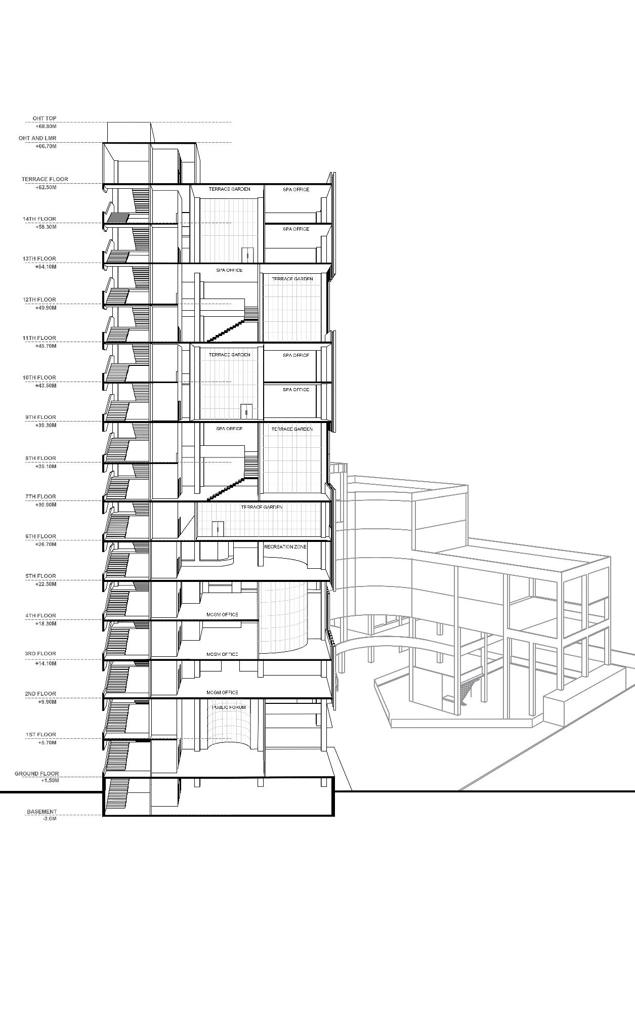 Understanding public programs that activate the urban realm at the lower levels in contrast to restrictive boundaries of the typical government offices. It also applies the design principles to integrate the city within the large , along with understanding the past design guidelines which has affected the Mumbai city at large to enhance future developments.