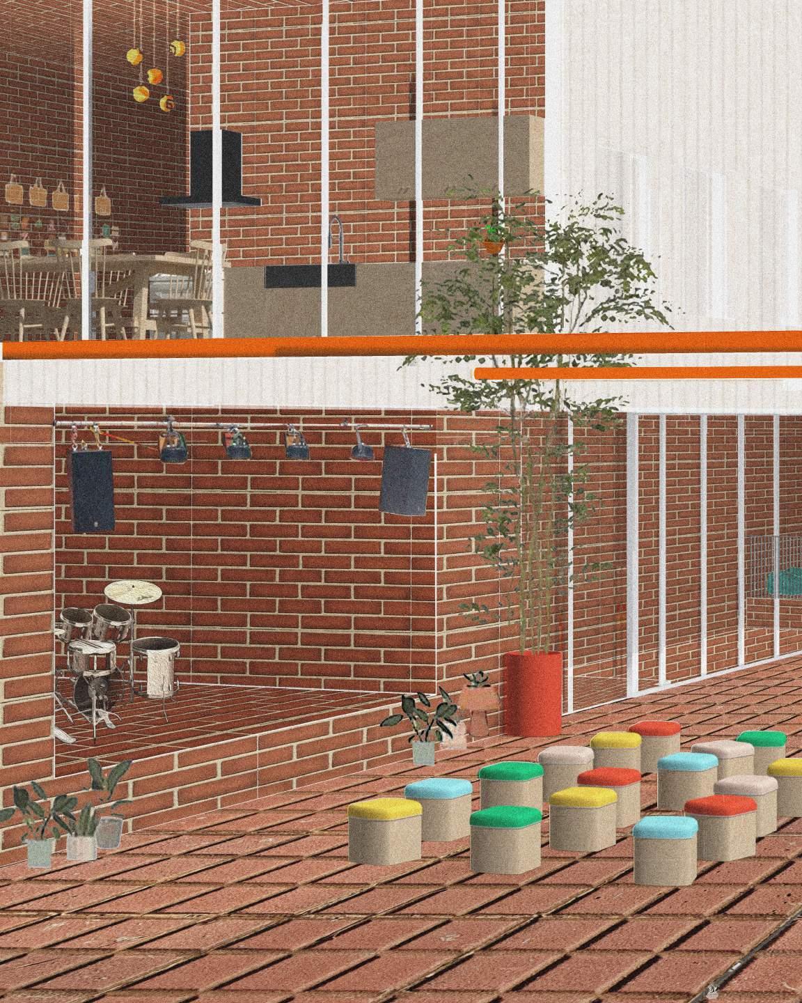 This diagram showcases how circulation and thresholds interact with the public window system on the facade in order to highlight it throughout the project.