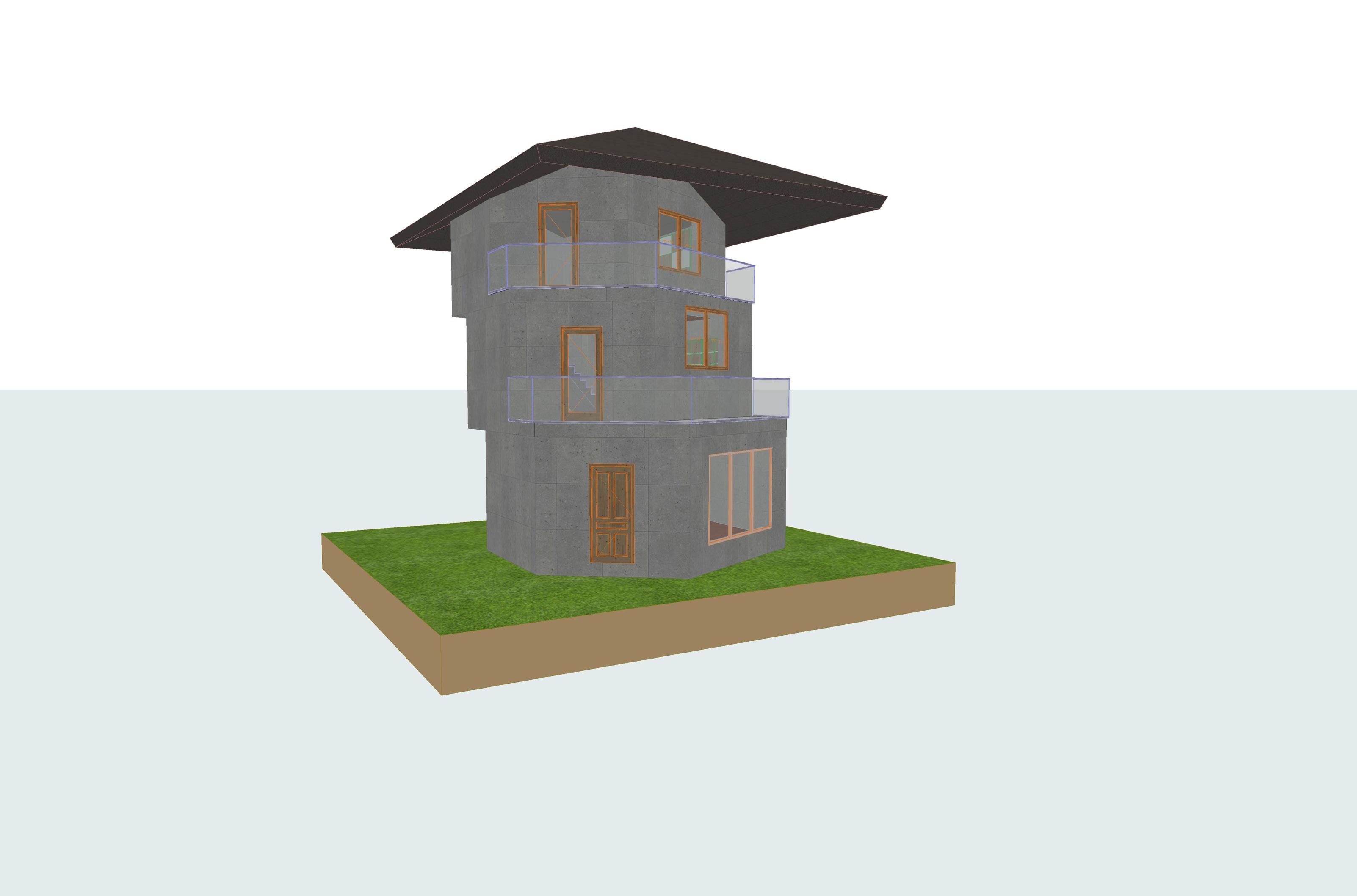 AI image generator was used to create realistic architecture photos. By providing base image of the house and entering prompt words (modern, residential building, city centers, squares, urban landscape, cars, people, streets, reality, perspective, Minimalism style, polished concrete), rendered photos of my building can be generated. The AI is able to generate realistic texture, lighting condition and ambience of the architecture, but the images contain lots of errors, including missing doors, weird light and shadow, applying wrong texture on the railings and combining my building with the surrounding building. Although AI tools can create the vibes of a realistic architecture photo, it lacks of accuracy and understanding of the architecture that precise images cannot be generated.