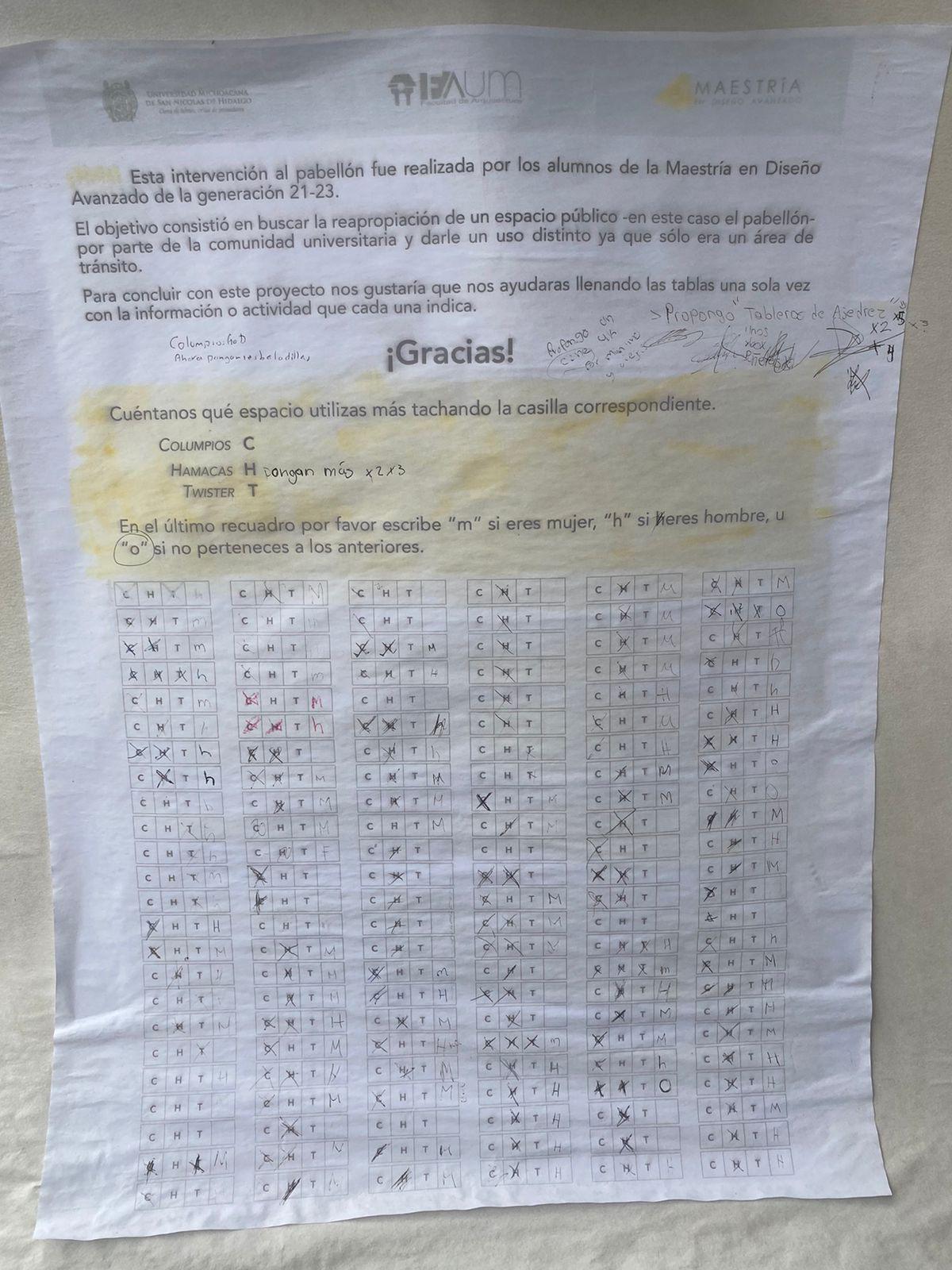 La presente intervención fue diseñada para la plaza del asta bandera localizada frente a la biblioteca central de Ciudad Universitaria de la Universidad Michoacana de San Nicolás de Hidalgo, cuyo propósito es la reactivación del espacio público dentro de la universidad.
