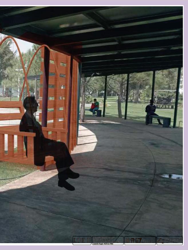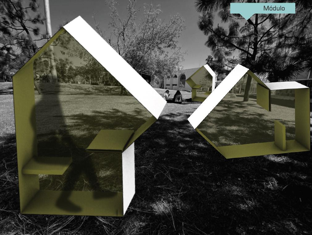 La otra propuesta consiste en generar un punto de encuentro e intercambio de conocimiento mediante la instalación de módulos de lectura que propicien nuevas formas de utilización del espacio y una experiencia compartida a través de la comunicación y convivencia. Esto está dirigido a la comunidad Universitaria y visitantes.