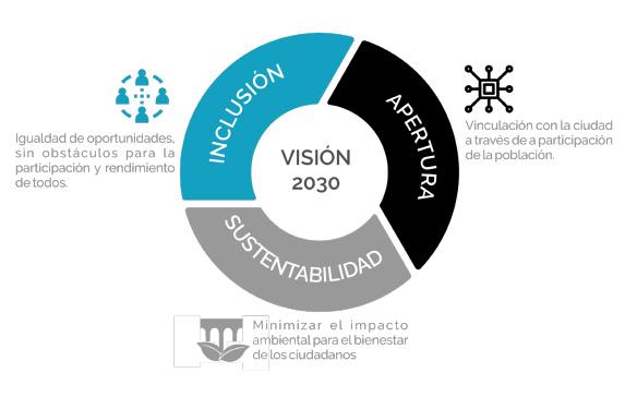 Para el logro de estos objetivos se plantean 18 estrategias clasificadas en seis categorías a las que se denomina “ejes estratégicos”, que constituyen las vías para lograr la visión de Ciudad Universitaria a 2030. Las acciones contenidas en cada uno hacen referencia a lo siguiente: