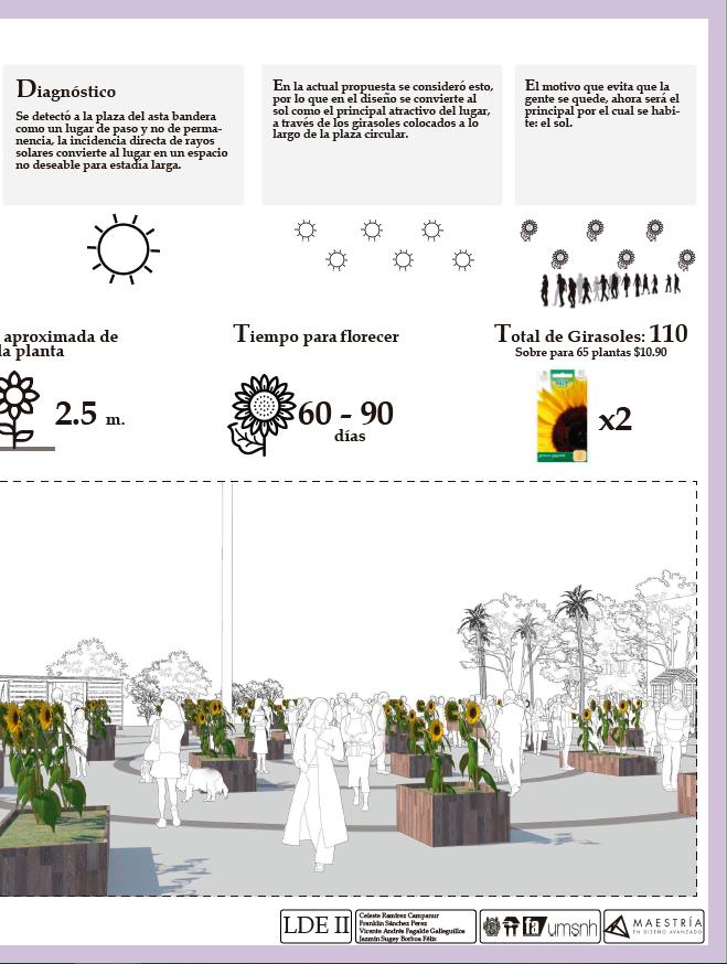 Convertir al sol en el principal atractivo y no en el motivo para evitar el lugar. El objetivo consiste en llenar el centro de la plaza de girasoles para lograr ser un punto atractivo.