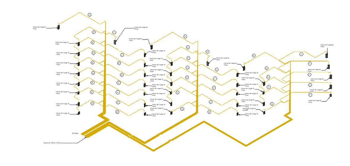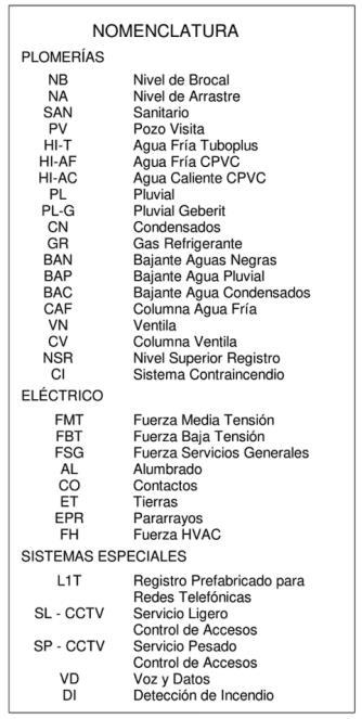 • Cotas, pendientes de tubería, diámetro de Tuberías, y notas.