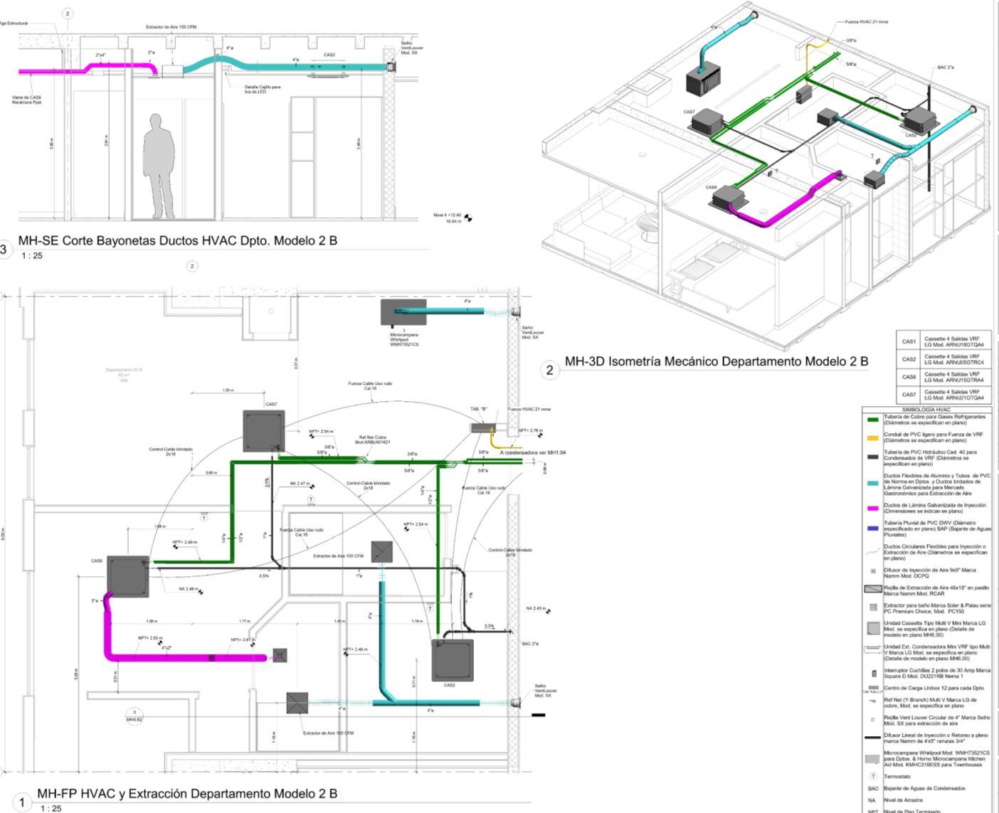 • Isométricos de Modelado y Documentación HVAC en Departamento. Fan & Coil.